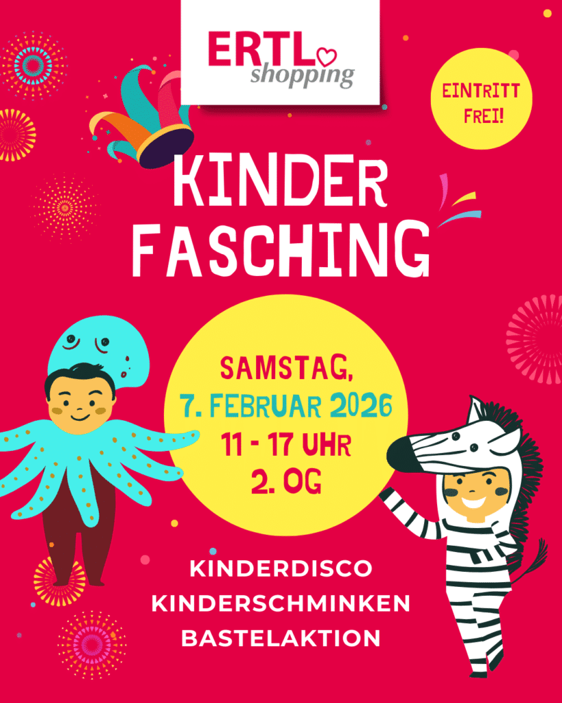 Am Samstag, 7. Februar 2026, verwandelt sich das ERTL-Zentrum in eine kunterbunte Faschingswelt für Kinder.