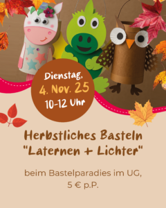 - Ort: ERTL-Zentrum – Bastelparadies (Laternen) / 2. Obergeschoss, Eventraum (Töpfern)