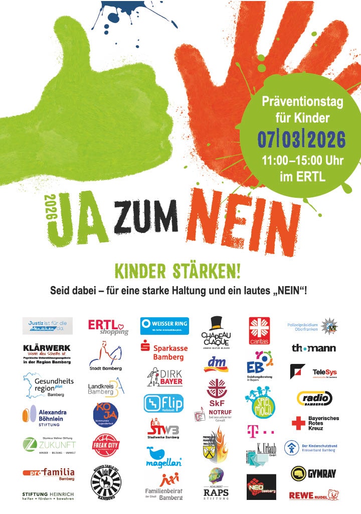Am Samstag, den 7. März 2026 findet im ERTL-Zentrum in Hallstadt erneut der Präventionstag „Ja zum Nein“ statt – ein Aktionstag, der Kinder, Jugendliche und Eltern stärkt, Mut macht und ihnen hilft, Grenzen zu setzen, „Nein“ zu sagen und sich im Notfall Hilfe zu holen.