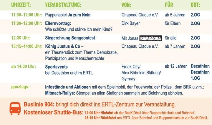 Begleitet wird der Tag von einem vielfältigen Rahmenprogramm für Vorschulen, Grundschulen, weiterführende Schulen und Eltern.