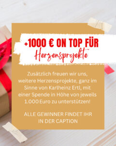 Zusätzlich unterstützen wir mit großer Freude fünf ausgewählte Herzensprojekte – ganz im Sinne von Karlheinz Ertl – mit einer Spende in Höhe von jeweils 1.000 Euro: